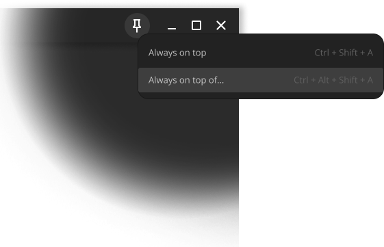 Working in a specific application only where you need PureRef? Attach PureRef to it and it'll snap to and stay on top of it, trying to stay in sync with it, minimizing and moving together with the other application.