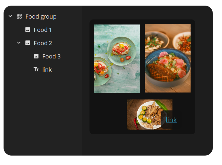 Get an overview of everything in your scene with the hierarchy window. By manipulating item ordering in the list you can control the relationships of images and notes.